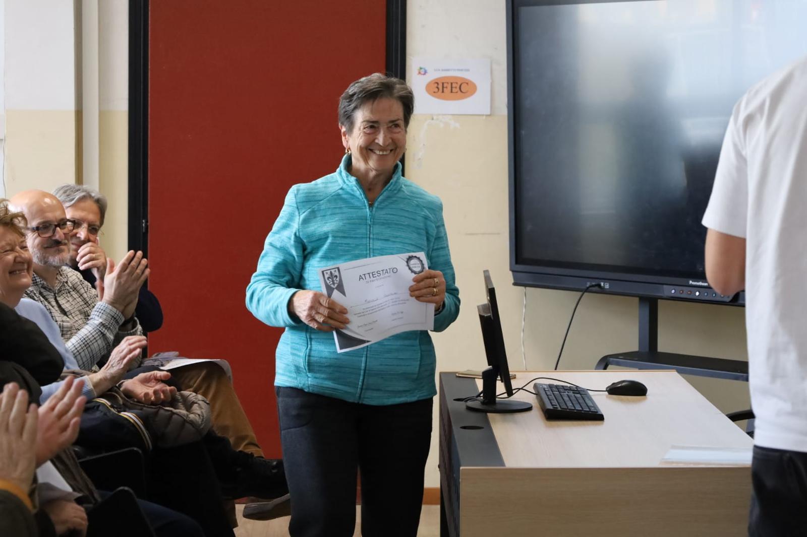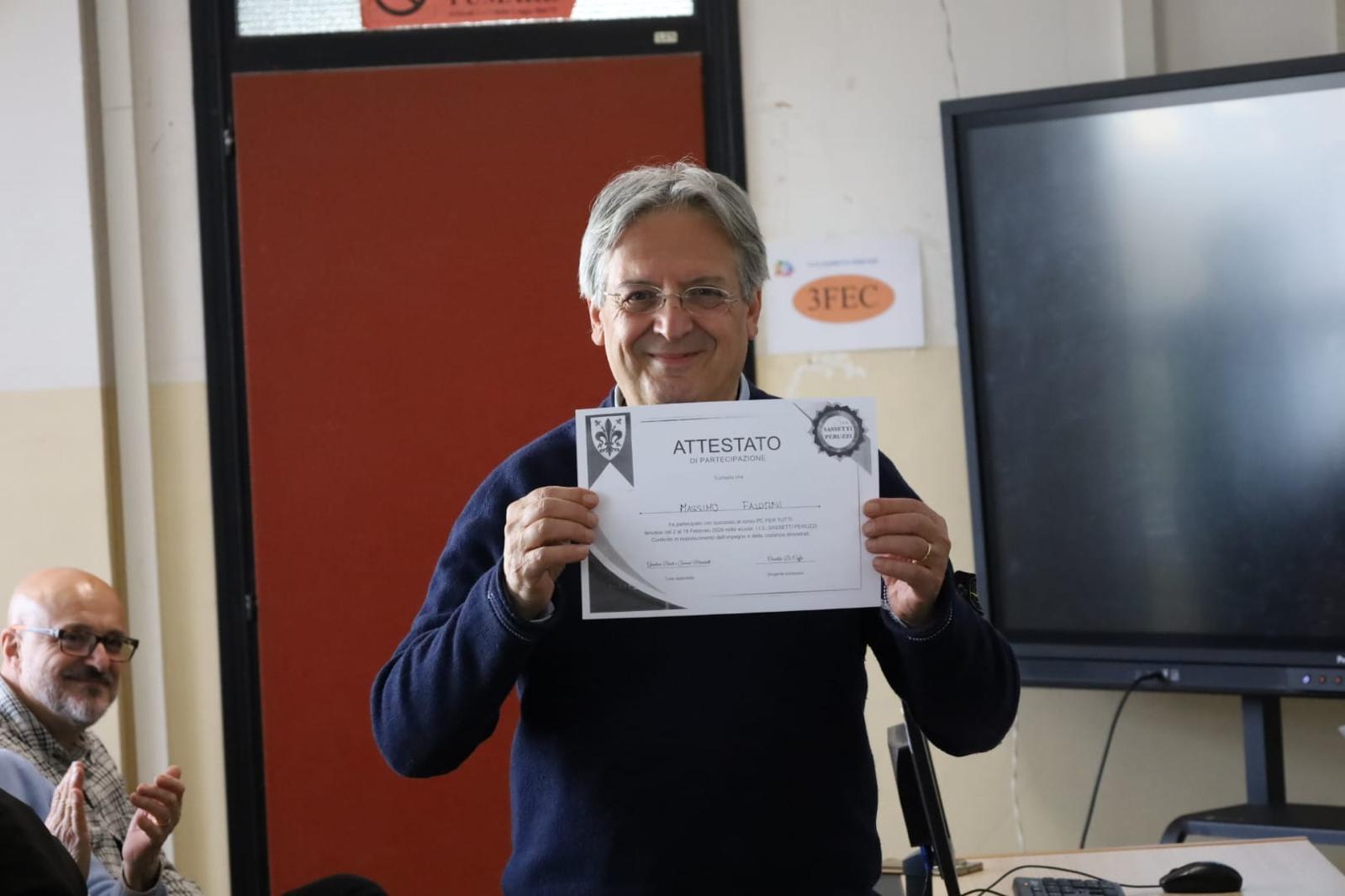 Si è appena concluso, con la consegna degli attestati di partecipazione, il progetto formativo PC per tutti, in cui 43 studenti del terzo anno della Sassetti Peruzzi hanno insegnato in 5 lezioni di 2 ore con la formula “face to face” a 43 pensionati dello Spi/Cgil del Q5 ad utilizzare il computer e a migliorare le possibilità che la rete offre.
